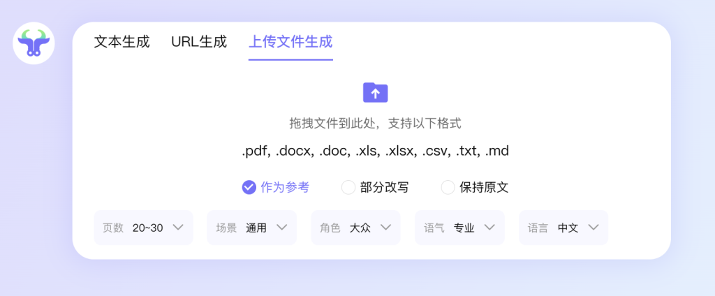 | 上传文档生成 | 已有Word/TXT版内容,需要转成PPT | 支持「保持原文」模式,数据零误差,适合报告、制度、方案类PPT |