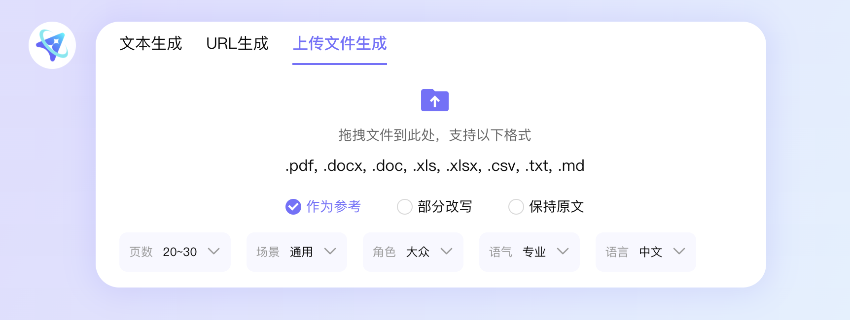 我们全面支持以下文件格式上传,AI会自动提取核心内容并智能排版生成PPT: