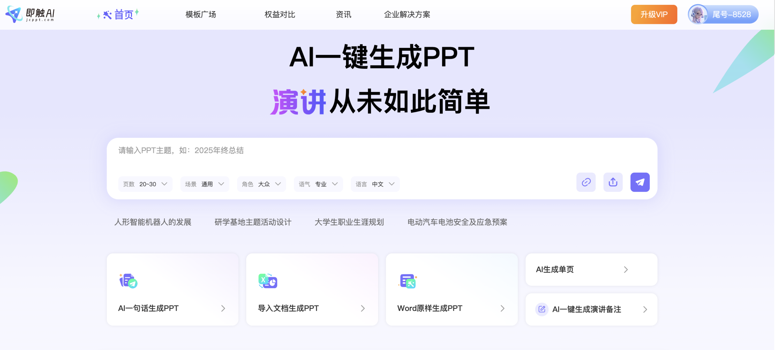 登录即触PPT官网(jcppt.com),点击首页的“导入文档生成PPT”按钮,选择你的Word文件(支持.doc.docx格式)。