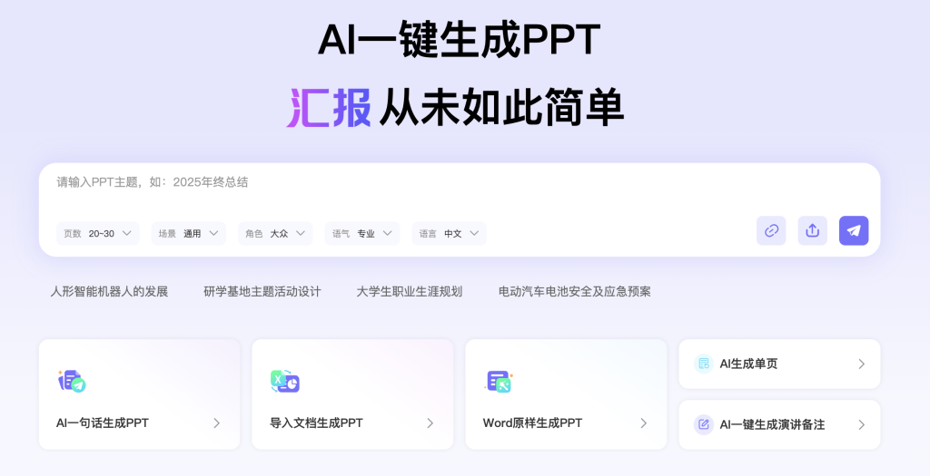 你正在纠结选哪个AI PPT工具吗?这篇文章帮你回答:市面上这么多AI PPT工具,哪个最适合你的具体需求?我们实测了即触PPT、aippt、百度文库AI、Gamma、WPS AI五款用户关注度最高的工具,从内容准确性、生成速度、易用性、额外功能四个核心维度展开测评,所有结论均来自真实操作测试,没有主观星级评分,只有客观功能表现和适用场景建议。