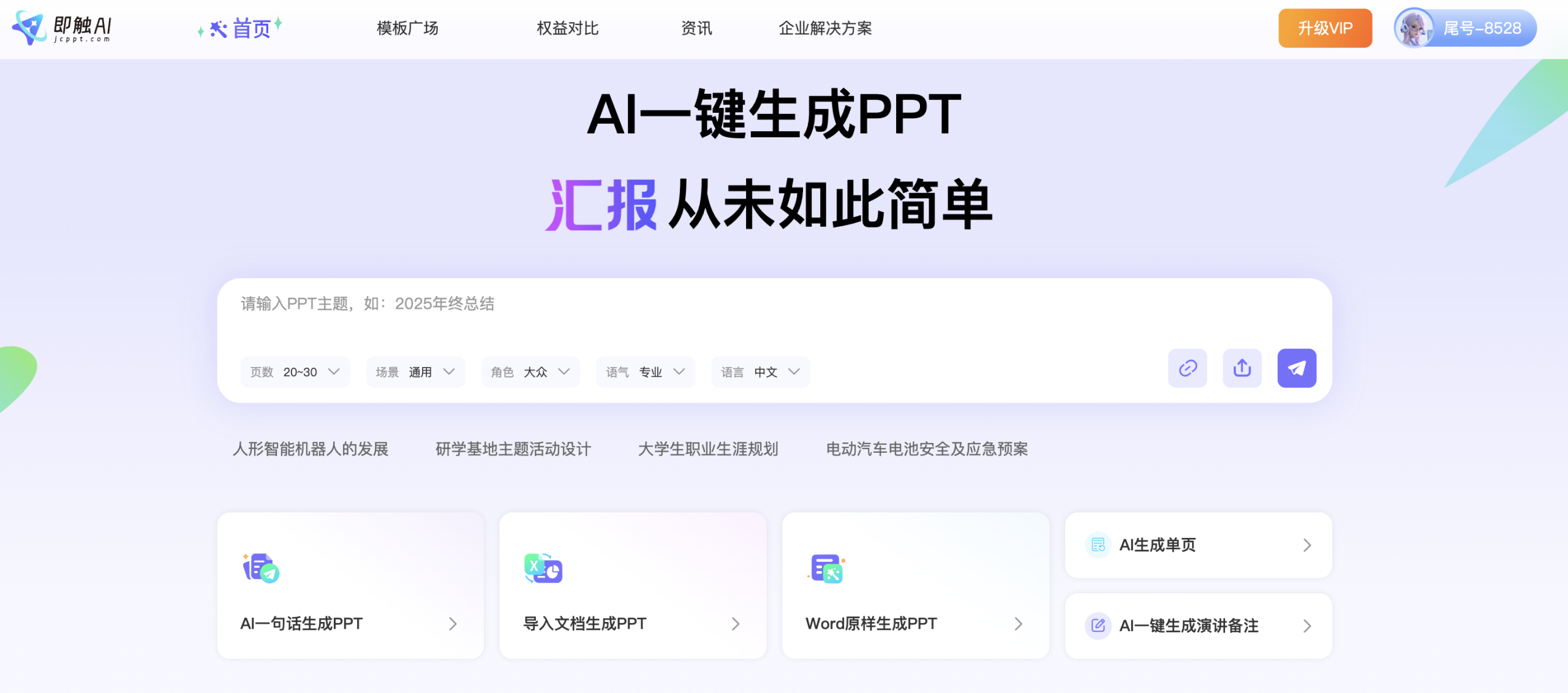 登录即触PPT官网(jcppt.com),点击“AI一句话生成PPT”,输入你的汇报主题。
